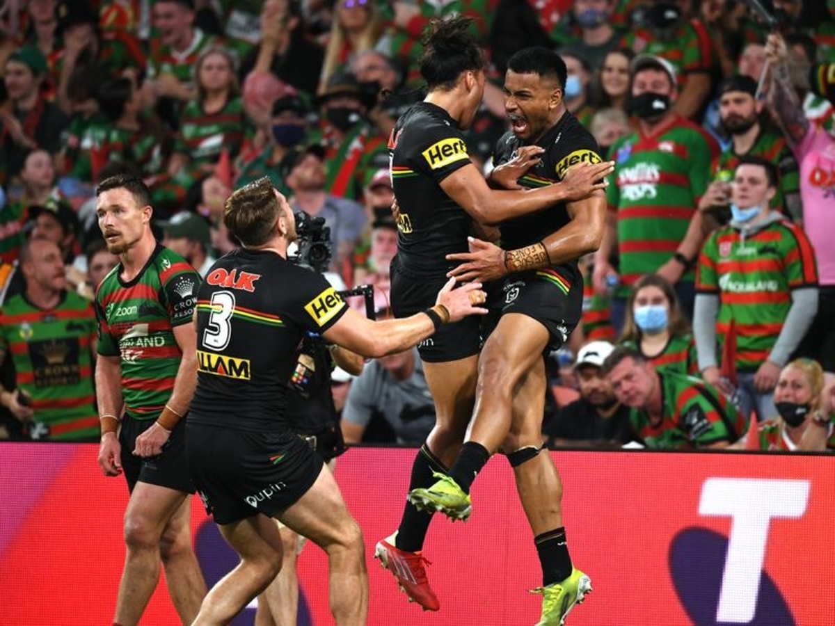 Cody Walker had already produced one moment of individual brilliance, fending Nathan Cleary as he beat four Panthers to score the Rabbitohs' first-half try.