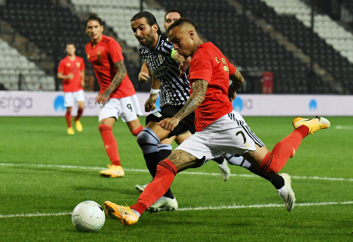 Rafa Silva pulled one back with a stoppage time header but it came too late to avoid an embarrassing defeat which will pile pressure on manager Jorge Jesus, who returned to Benfica during the close season for a second spell in charge.