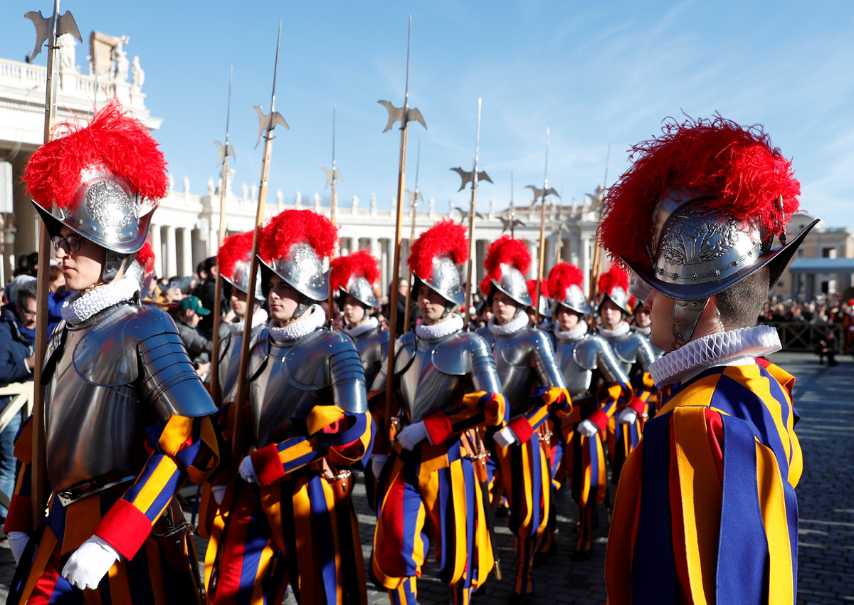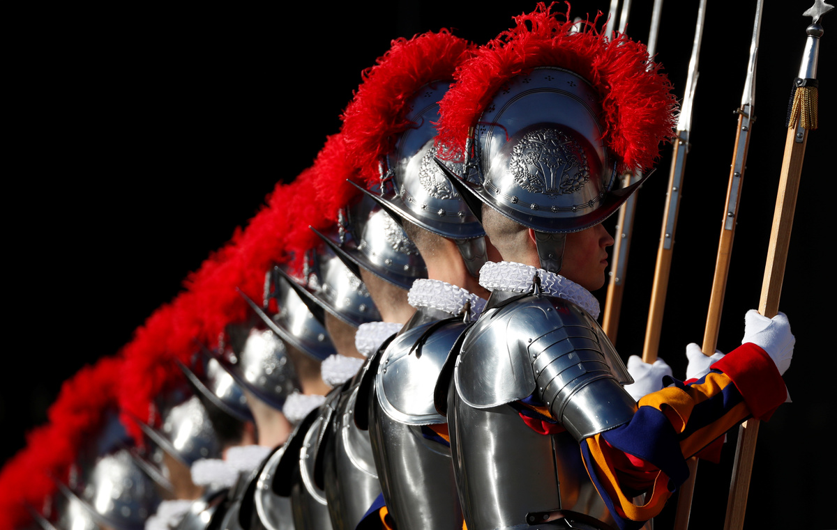 VATICAN CITY (Reuters) - The Vatican's Swiss Guard, the colorfully dressed mini-army that helps protect the pope, will have cooler heads now they have swapped their ancient metal helmets for ones made by 3-D printers.
