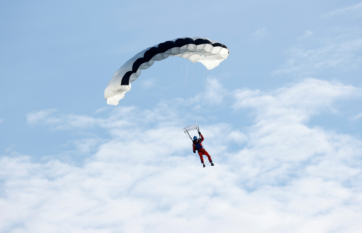 The two-seater prototype plane made the test flight in good weather and to promote renewable energy. Parachutist Raphael Domjan reached a speed of 150 kilometres per hour during his jump, landing near the project base in Payerne.