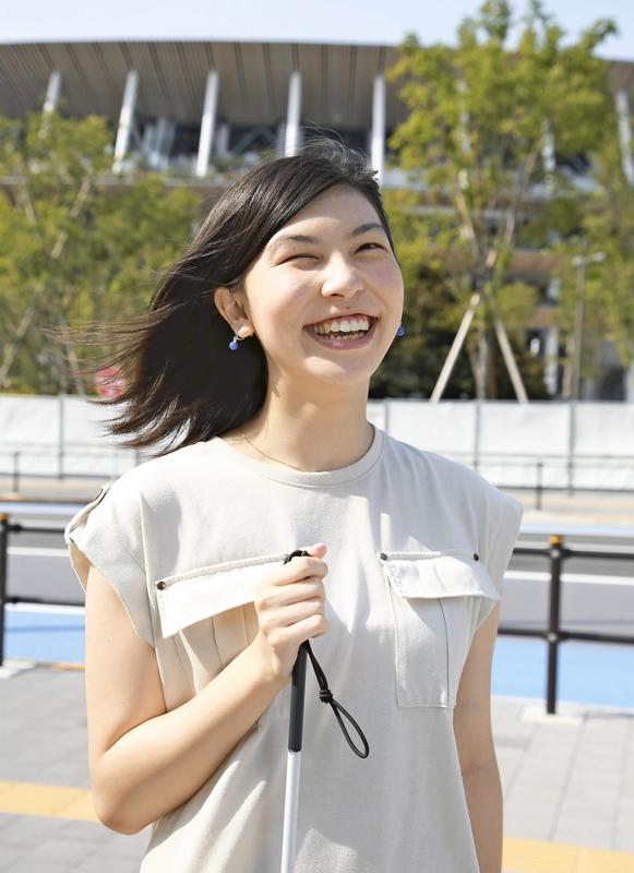 "I want to improve my English and sign language skills," said Momoka Akiyoshi, 23, a first-year student at the Acupuncture and Physical Therapy Teacher Training School of the University of Tsukuba. Akiyoshi, who lives in Bunkyo Ward, Tokyo, will work as a volunteer for the upcoming Paralympics. She was born with weak eyesight and has a narrow visual field. She lost sight in her right eye when she was young. Hoping to show others that people with disabilities can contribute in various ways, Akiyoshi applied for a volunteer position and was assigned to be a guide at the Japan National Stadium in Shinjuku Ward, Tokyo, the main venue for the Paralympics.