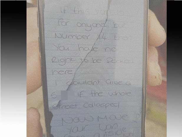 "I couldn’t give a s*** if the whole street collasped [sic]. Now move your van from outside my house.”