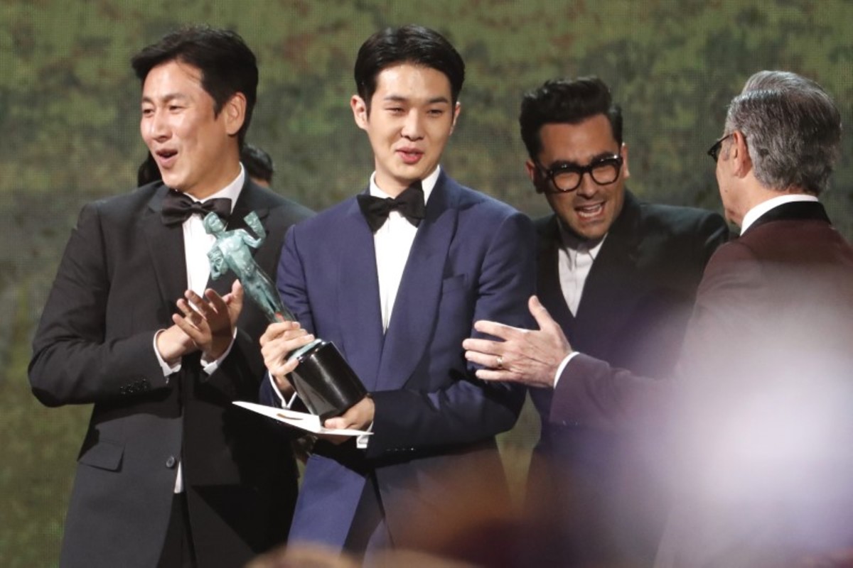 The Korean-language film "Parasite" won the top prize, for best ensemble cast in a motion picture, at the Screen Actors Guild Awards on Sunday.