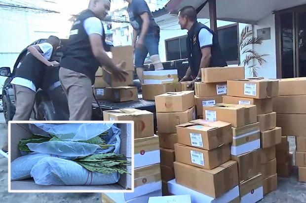 Hat Yai narcotics suppression police on Thursday inspected the parcels at the company's premises on Kanchanawanit Road in tambon Ban Phru of Hat Yai.