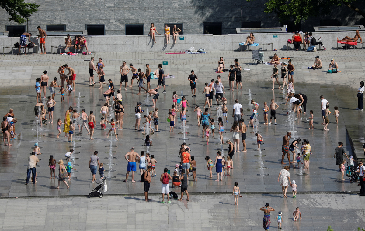 In Paris, locals and tourists stripped down to paddle in the Trocadero fountains by the Eiffel Tower.