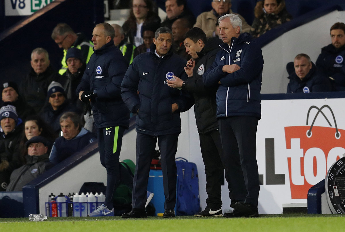 Chris Hughton's side have only scored in three away games this season and were largely restricted to shots from distance. At the other end, Albion's Matty Phillips thought he had won a penalty when his shot hit Glenn Murray's arm but referee Martin Atkinson waved away the appeal, much to Pardew's fury.