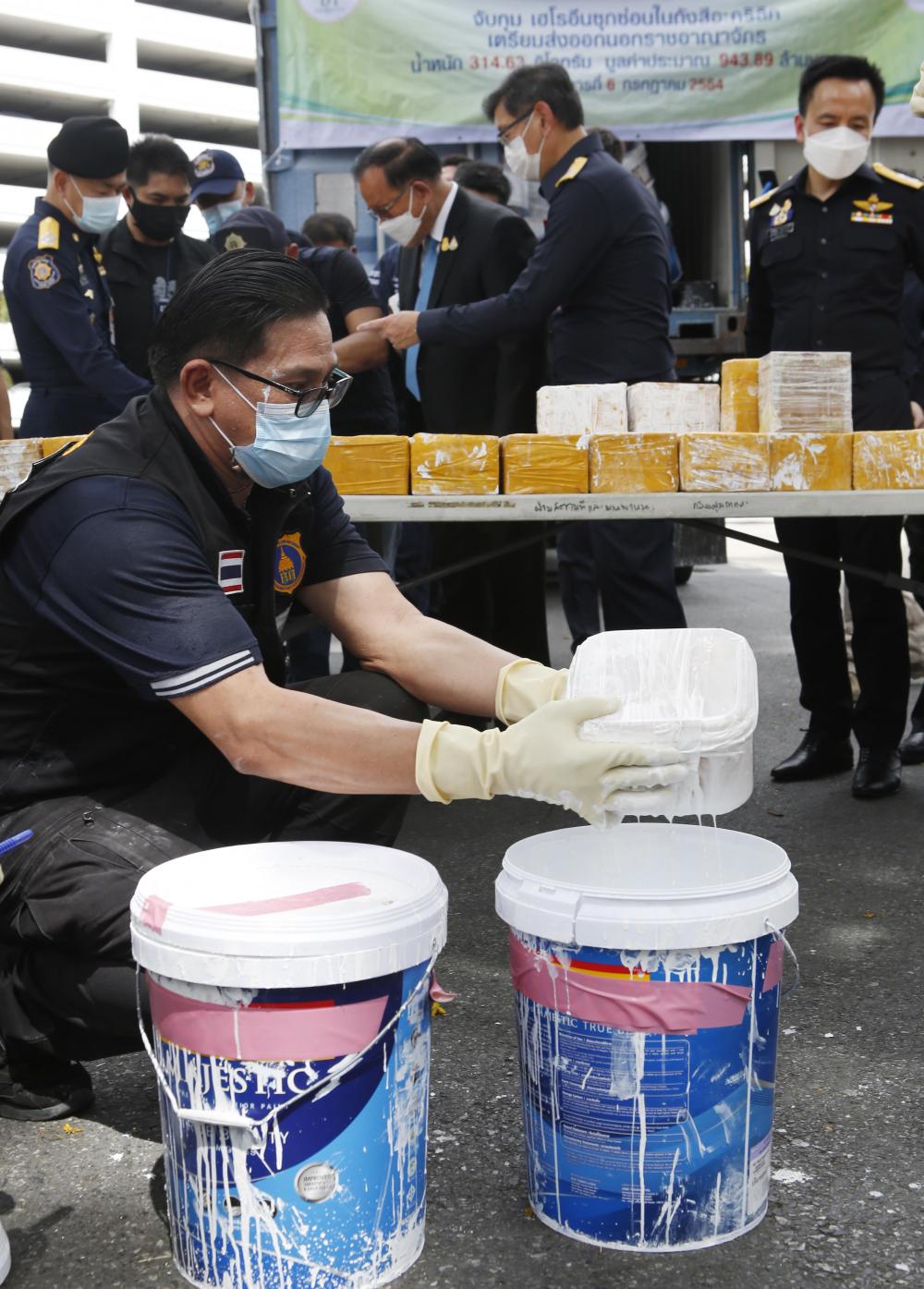 The unusual paint buckets were seized at Laem Chabang port before they could be shipped to the destination, courtesy of an intelligence report.