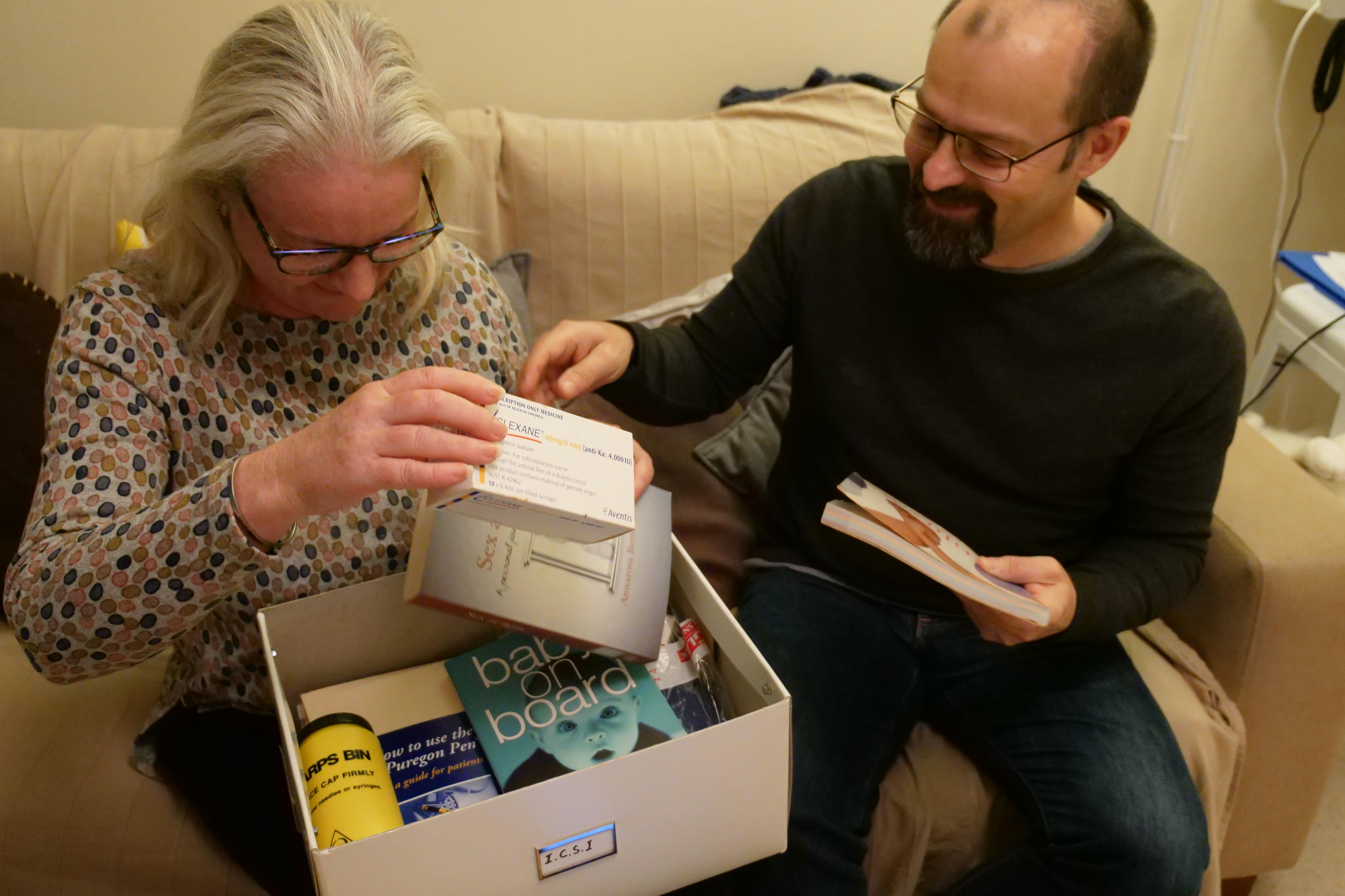 They are memories of their own arduous journey to conceive their child — fertility guides, books about sex, a sharps disposal bin, medication, and a Puregon pen for pro-follicle injections.