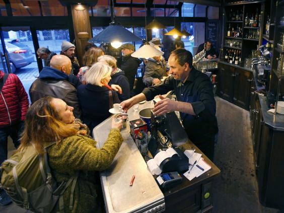 The shattered windows have been replaced, bullet holes removed, wreckage swept away and piles of tributes pushed back at the Café Bonne Biere, which is open for business once more.