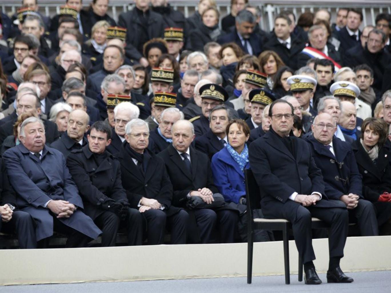 More than 1,000 relatives and close friends of the dead – and many wounded victims well enough to go along – formed a phalanx of grief along one side of the courtyard. Two families refused to attend because they blamed Mr Hollande, and politicians in general, for not preventing the attacks.