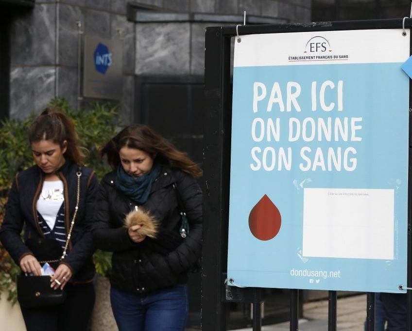 For those due to travel to Paris any time in the near future, the best way to help is to give blood.