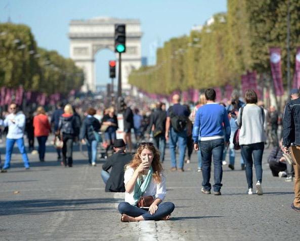 In the busy Place de l’Opera and Champs-Elysees, levels were down 20 per cent and 30 per cent respectively, the Guardian reports.