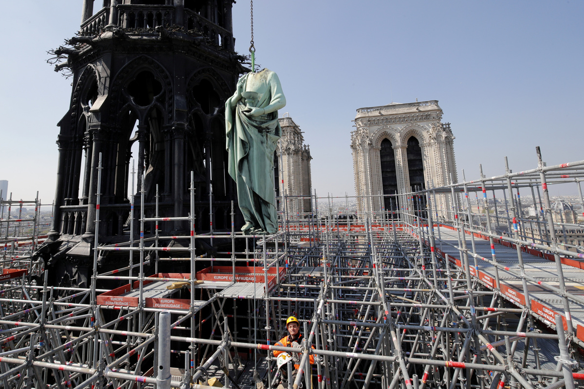 Notre-Dame was in the midst of renovations, with some sections under scaffolding and bronze statues were removed last week for works.