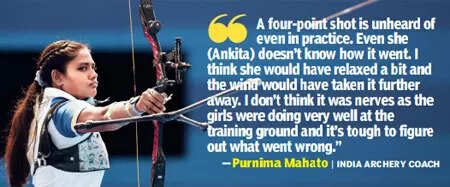 “A four-point shot is unheard of even in practice. Even she (Ankita) doesn’t know how it went. I think she would have relaxed a bit and the wind would have taken it further away,” India coach Purnima Mahato told TOI.
