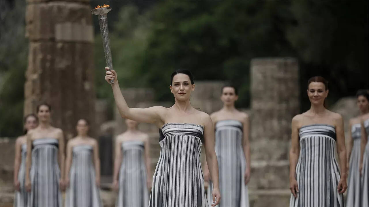 NEW DELHI: The torch for the Paris 2024 Olympic Games was ignited in ancient Olympia during a customary ceremony on Tuesday, signaling the final phase of the seven-year preparations for the Games, set to commence on July 26.