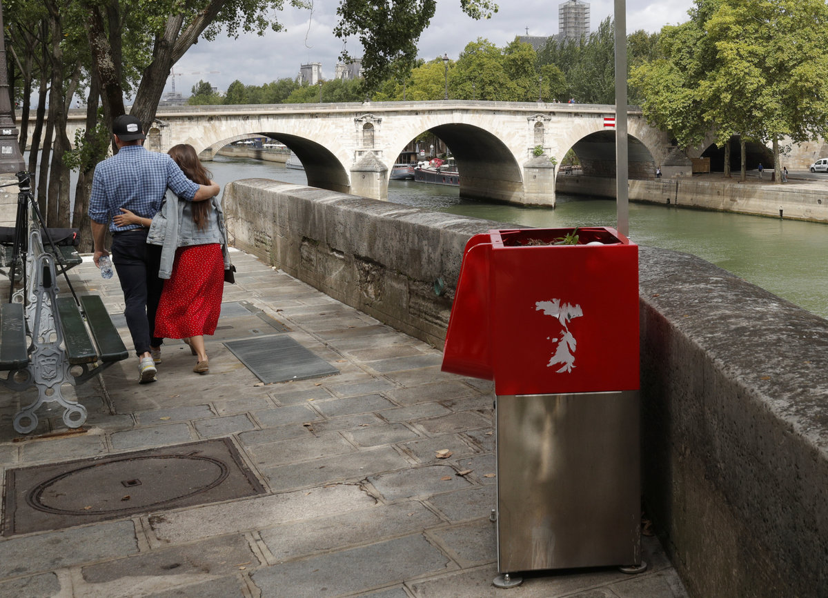 One of the bright red "urinoirs" installed on the Ile Saint-Louis, not far from Notre Dame cathedral and overlooking tourist boats passing on the Seine, has caused particular indignation.
