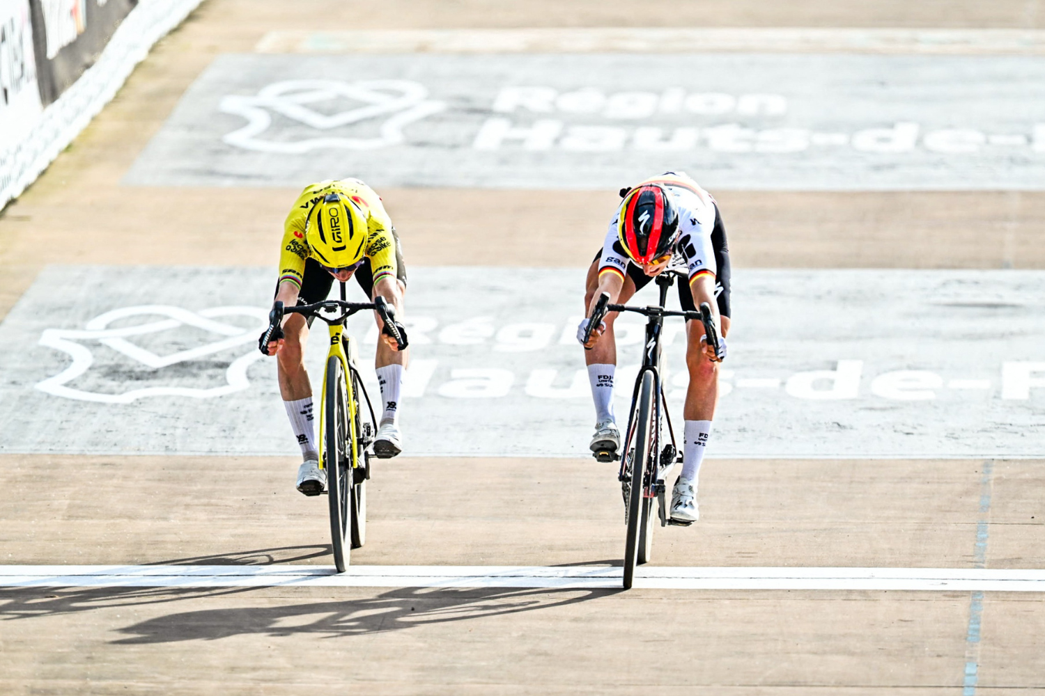 Wout van Aert finally added a cobbled monument to his palmares this year when he beat Tadej Pogačar to victory in the Roubaix velodrome. Van Aert's team meat Marianne Vos almost made it two out of two for Visma-Lease a Bike a few hours later, but was pipped to the line by FDJ Suez's Franziska Koch in what was a surprise win .