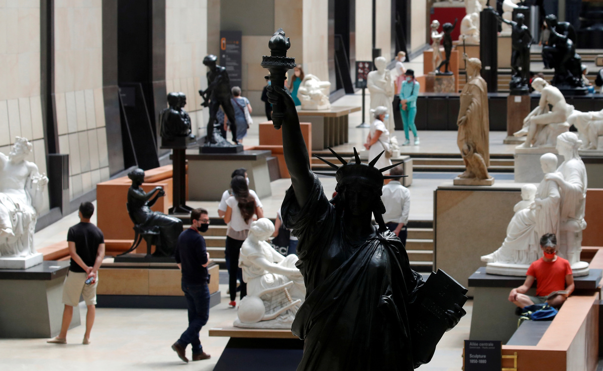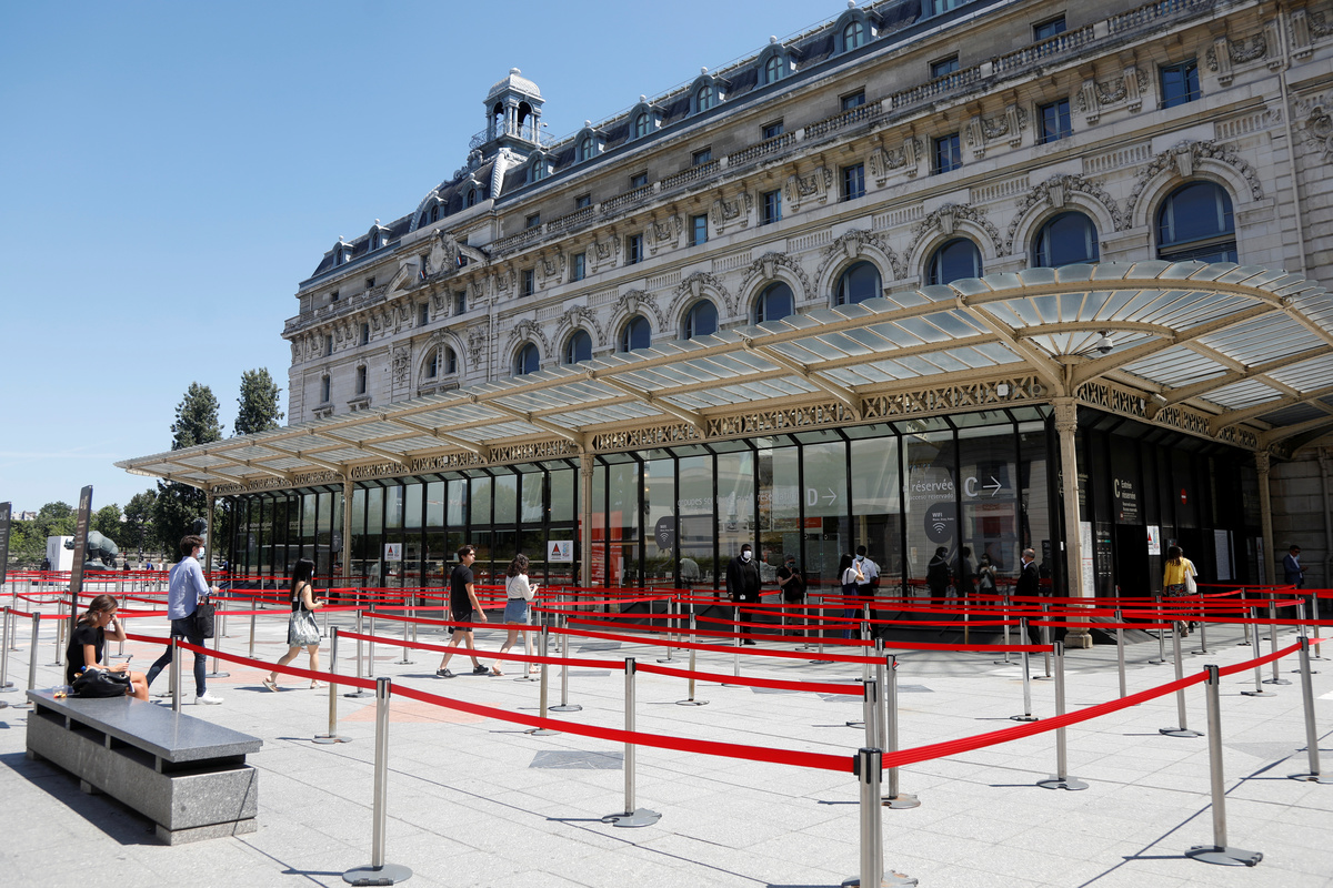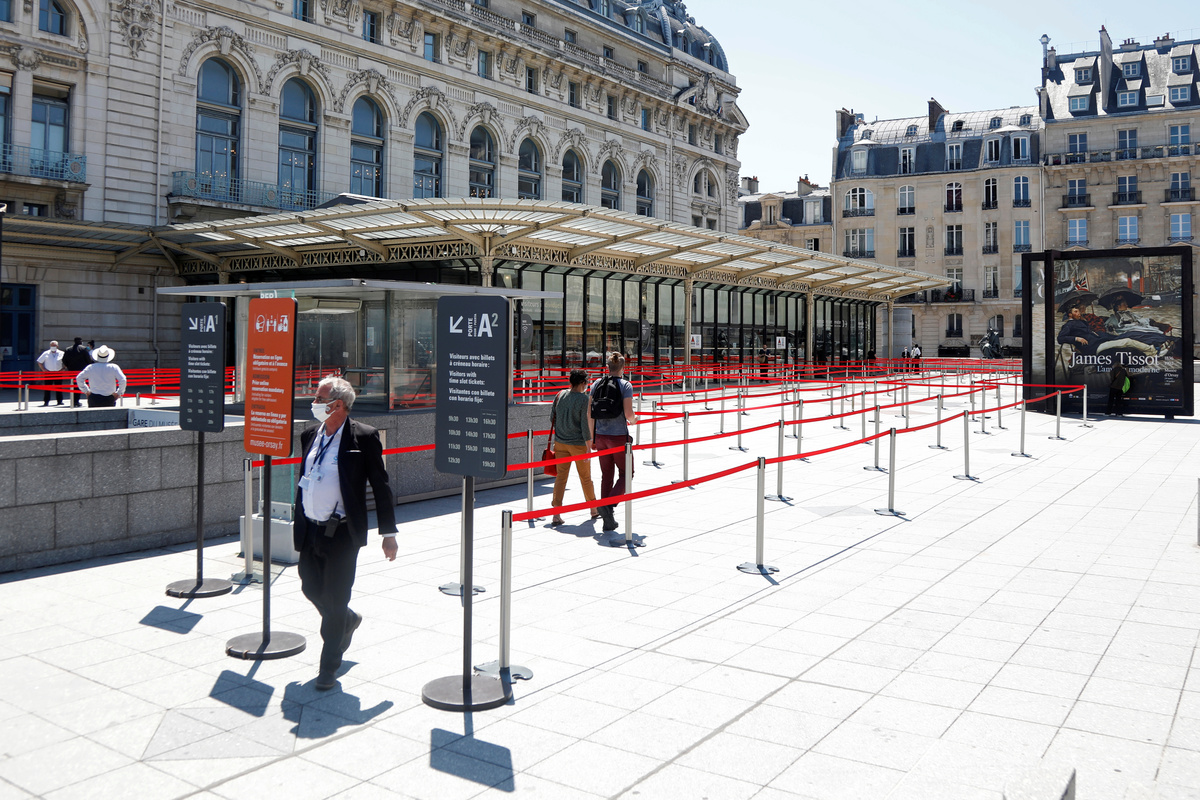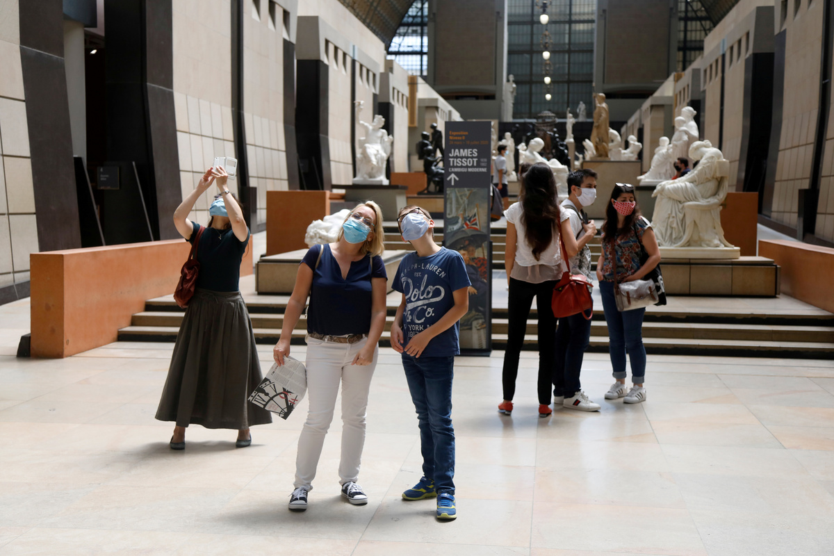 A view shows the Musee d'Orsay, the former Gare d'Orsay train station, in Paris as the museum re-opens doors to the public following the coronavirus disease (COVID-19) outbreak in France, June 23, 2020. REUTERS/Charles PlatiauVisitors, wearing protective face masks, look at artworks during a visit at the Musee d'Orsay, the former Gare d'Orsay train station, in Paris as the museum re-opens doors to the public following the coronavirus disease (COVID-19) outbreak in France, June 23, 2020. REUTERS/Charles PlatiauVisitors wear protective face masks as they look at artworks during a visit to the Musee d'Orsay, the former Gare d'Orsay train station, as the museum re-opens its doors to the public, following the coronavirus disease (COVID-19) outbreak, in Paris, France, June 23, 2020. REUTERS/Charles PlatiauVisitors, wearing protective face masks, look at artworks during a visit at the Musee d'Orsay, the former Gare d'Orsay train station, in Paris as the museum re-opens doors to the public following the coronavirus disease (COVID-19) outbreak in France, June 23, 2020. REUTERS/Charles Platiau