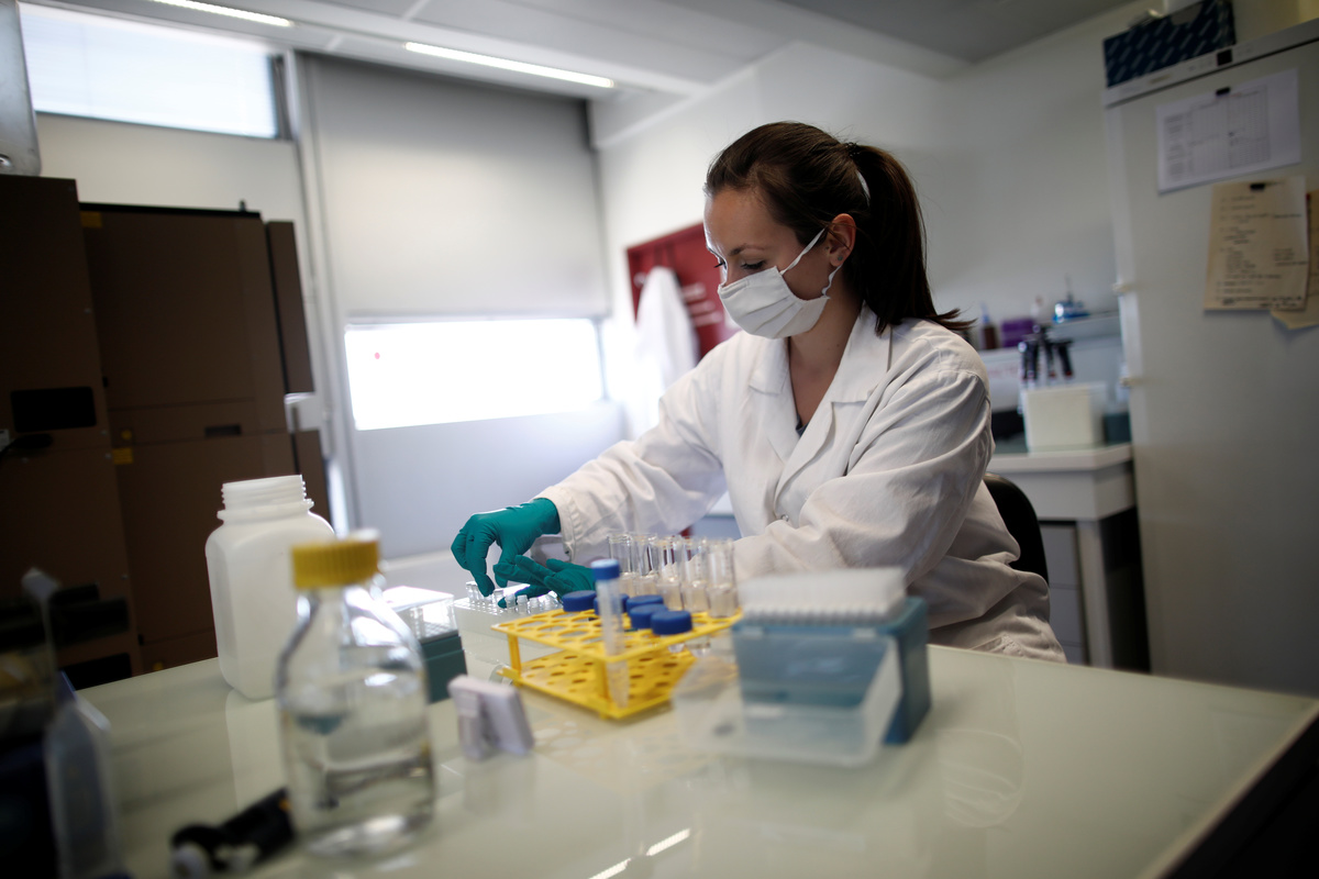 FILE PHOTO: A water quality scientist, conducts tests on a water sample at the Eau de Paris research and analysis laboratories in Ivry-sur-Seine, near Paris, France, July 22, 2020. REUTERS/Benoit Tessier