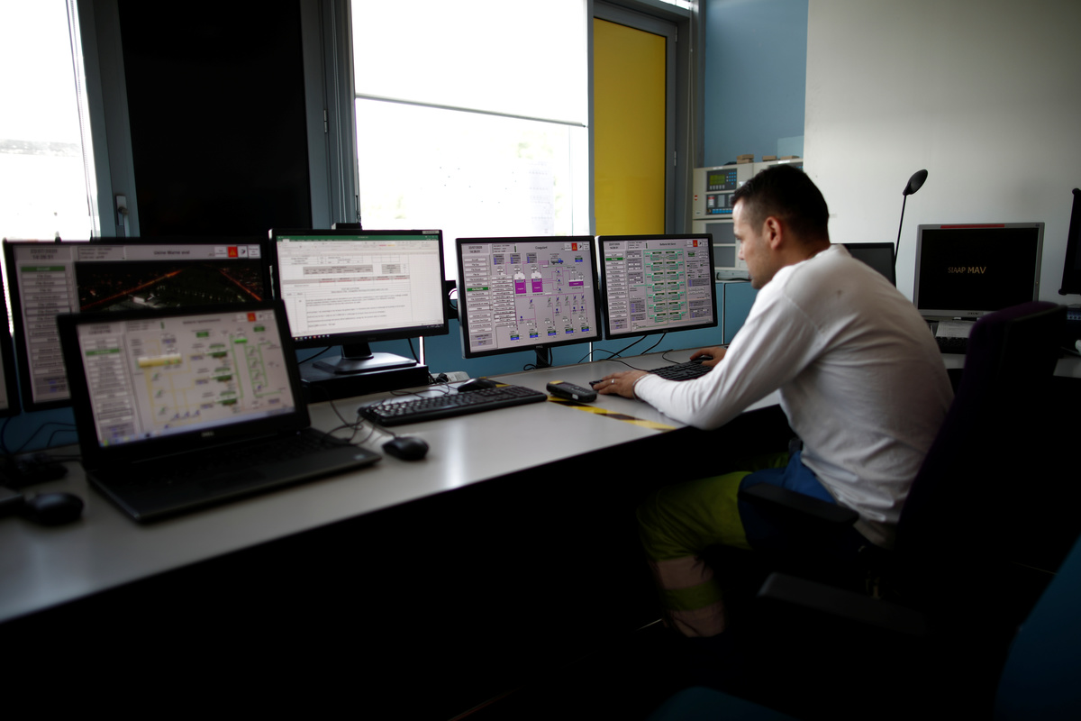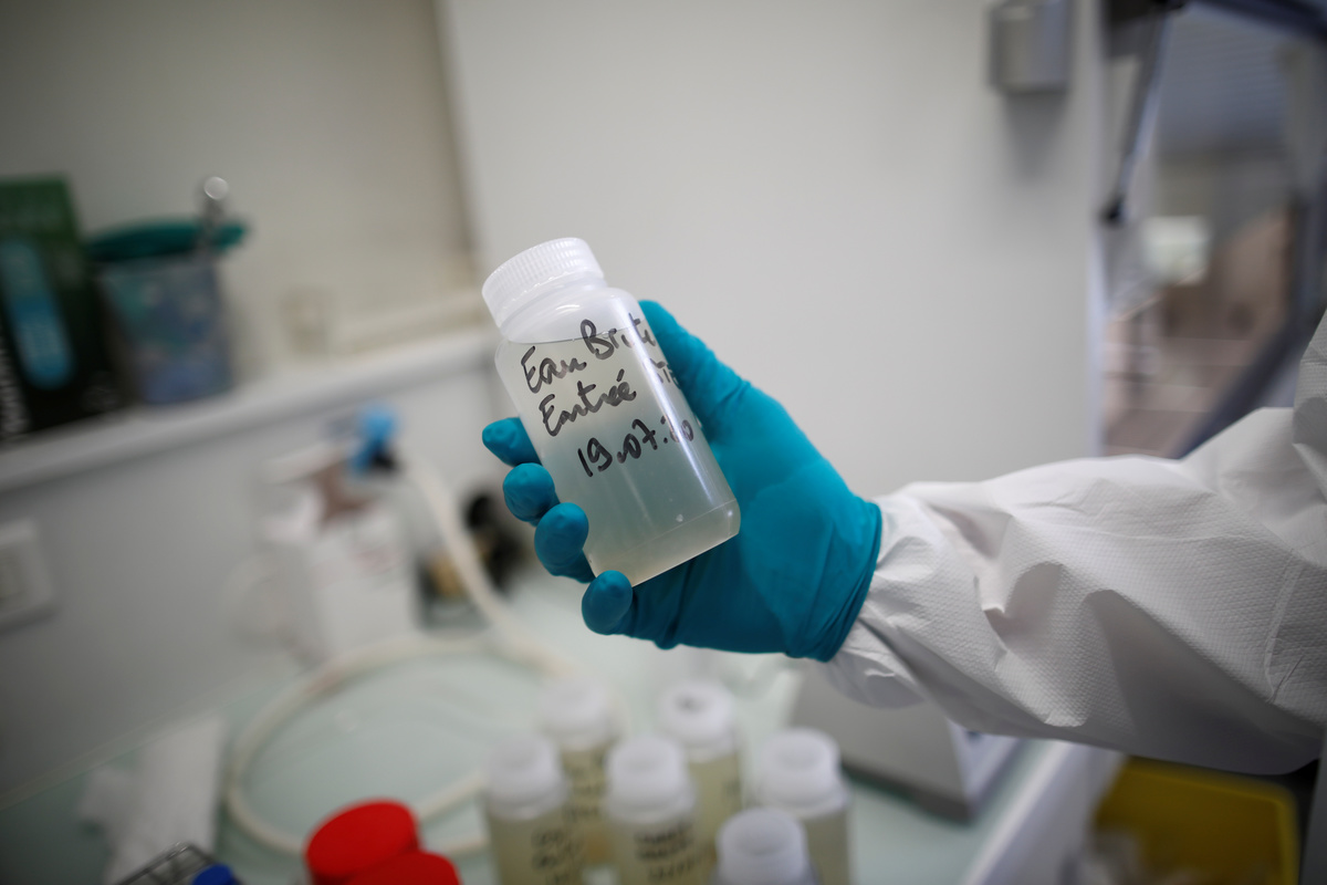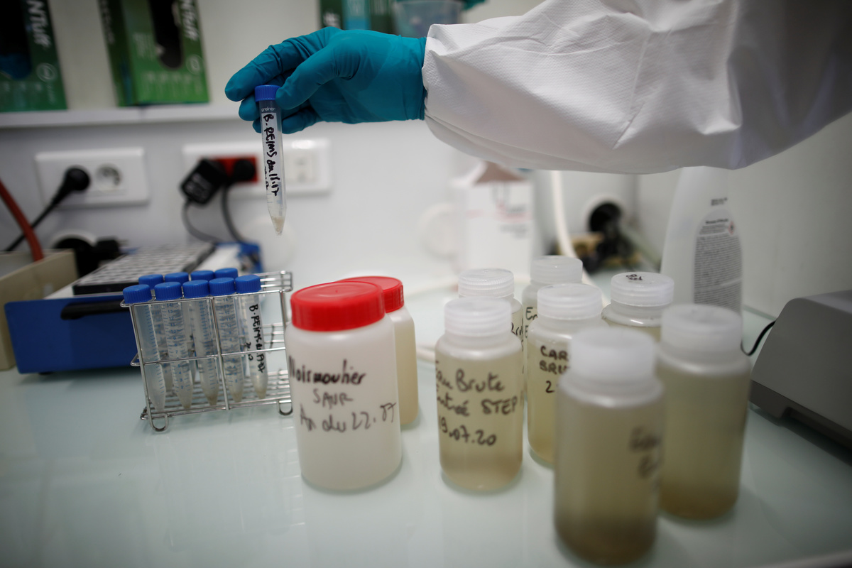 FILE PHOTO: A water quality scientist holds a water sample at the Eau de Paris research and analysis laboratories in Ivry-sur-Seine, near Paris, France, July 22, 2020. REUTERS/Benoit TessierFILE PHOTO: A water quality scientist, conducts tests on a water sample at the Eau de Paris research and analysis laboratories in Ivry-sur-Seine, near Paris, France, July 22, 2020. REUTERS/Benoit TessierFILE PHOTO: A water quality scientist holds a water sample at the Eau de Paris research and analysis laboratories in Ivry-sur-Seine, near Paris, France, July 22, 2020. REUTERS/Benoit TessierFILE PHOTO: A water quality scientist conducts tests on a water sample at the Eau de Paris research and analysis laboratories in Ivry-sur-Seine, near Paris, France, July 22, 2020. REUTERS/Benoit TessierFILE PHOTO: An employee looks at his mobile phone as he stands at the Marne Aval waste water treatment plant, operated by the Interdepartmental Sanitation Syndicate for the greater Paris metropolitan area (SIAAP), in Noisy-le-Grand, near Paris, France, July 22, 2020. REUTERS/Benoit TessierFILE PHOTO: An employee works in the control room of the Marne Aval waste water treatment plant, operated by the Interdepartmental Sanitation Syndicate for the greater Paris metropolitan area (SIAAP), in Noisy-le-Grand, near Paris, France, July 22, 2020. REUTERS/Benoit TessierFILE PHOTO: Sam Azimi, deputy director of innovation at the Interdepartmental Sanitation Syndicate for the greater Paris metropolitan area (SIAAP), speaks to members of media at the Marne Aval waste water treatment plant in Noisy-le-Grand, near Paris, France, July 22, 2020. REUTERS/Benoit TessierFILE PHOTO: Water fills pools at the Marne Aval waste water treatment plant, operated by the Interdepartmental Sanitation Syndicate for the greater Paris metropolitan area (SIAAP), in Noisy-le-Grand, near Paris, France, July 22, 2020. REUTERS/Benoit TessierFILE PHOTO: An employee looks at his mobile phone as he stands at the Marne Aval waste water treatment plant, operated by the Interdepartmental Sanitation Syndicate for the greater Paris metropolitan area (SIAAP), in Noisy-le-Grand, near Paris, France, July 22, 2020. REUTERS/Benoit TessierFILE PHOTO: Pipes run at the Marne Aval waste water treatment plant, operated by the Interdepartmental Sanitation Syndicate for the greater Paris metropolitan area (SIAAP), in Noisy-le-Grand, near Paris, France, July 22, 2020. REUTERS/Benoit Tessier