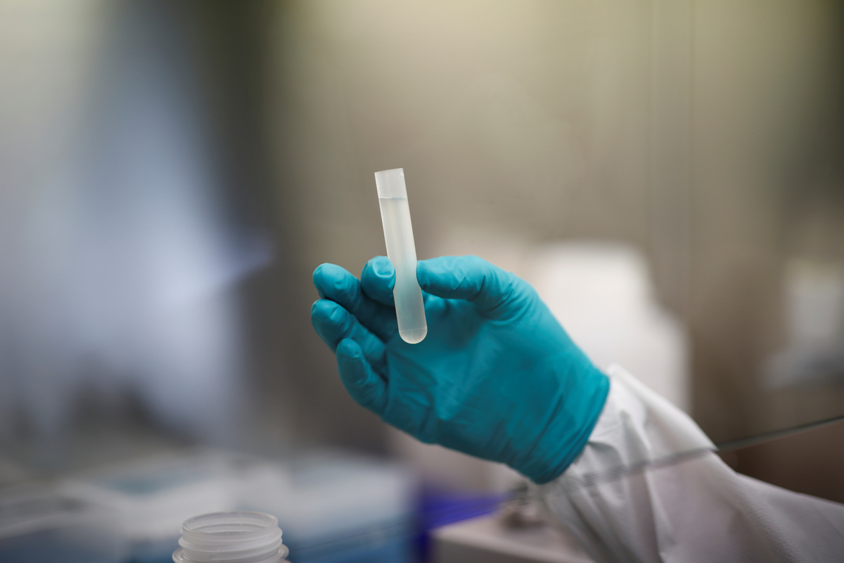 FILE PHOTO: A water quality scientist holds a water sample at the Eau de Paris research and analysis laboratories in Ivry-sur-Seine, near Paris, France, July 22, 2020. REUTERS/Benoit Tessier