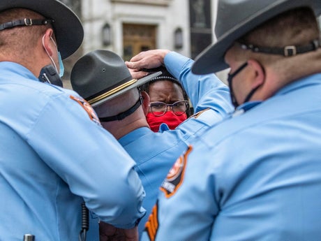 Video of the incident shows Ms Cannon, who is Black, handcuffed with her arms behind her back while being taken away by police. She repeatedly identifies herself as a legislator and asks why she is being arrested.