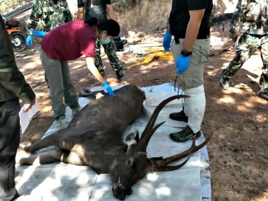 The adult deer, weighing about 200kg, was found near the park office and appeared to have died several days ago.