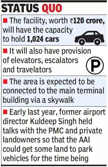 Pune airport director Santosh Dhoke told TOI that while they were trying their best to complete the car parking project soon, no plan was in motion to contact the PMC or private landowners for alternative land. “We can work on land that belongs only to the Airport Authority of India (AAI). As per the contract, the completion date of the car parking project is April 30 next year, but we are trying our best to complete the project early. Until the project is ready, parking issues will remain,” Dhoke said.