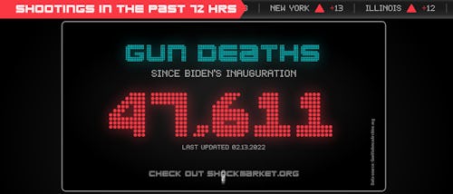 Nearby, Hogg himself also highlighted Oliver’s protest, directing the public to his newly launched website Shockmarket.org, a NASDAQ-style visualization enumerating the scale and scope of gun violence in the United States.