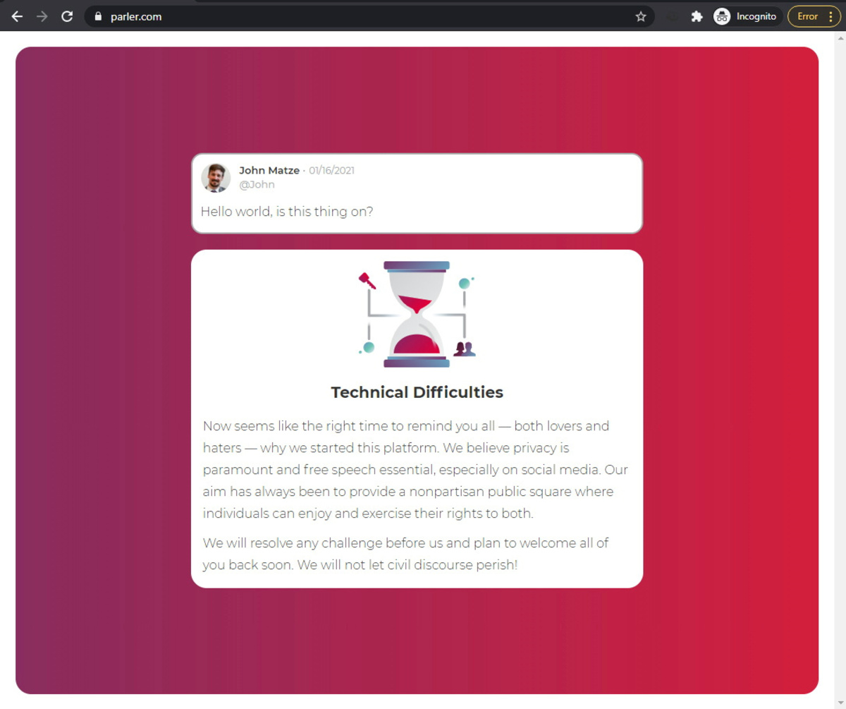 Parler has said its new platform was built on "sustainable, independent technology."