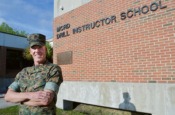 Kind, then a 28-year-old trainee from Zion, Ill., at Marine Corps Recruit Depot Parris Island in summer 2016, was usually allowed to get water during lectures such as this one _ staying hydrated was encouraged.