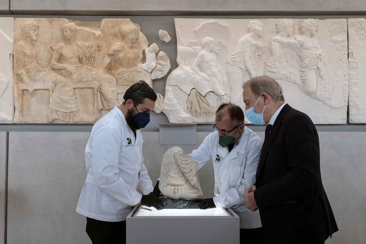Athens' Acropolis Museum presented on Monday the "Fagan fragment", a 35-by-31-centimetre (12-by-14-inch) marble fragment showing the foot of the seated ancient Greek goddess Artemis brought home from the Antonio Salinas Archaeological Museum in Palermo.