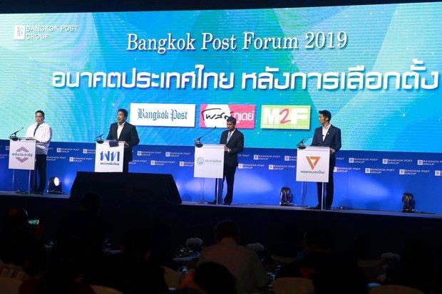 They voiced their visions on the topic, 'Thailand's post-election outlook' at the Bangkok Post Forum, held at the Centara Grand at CentralWorld yesterday to mark the 16th anniversary of its Post Today newspaper.