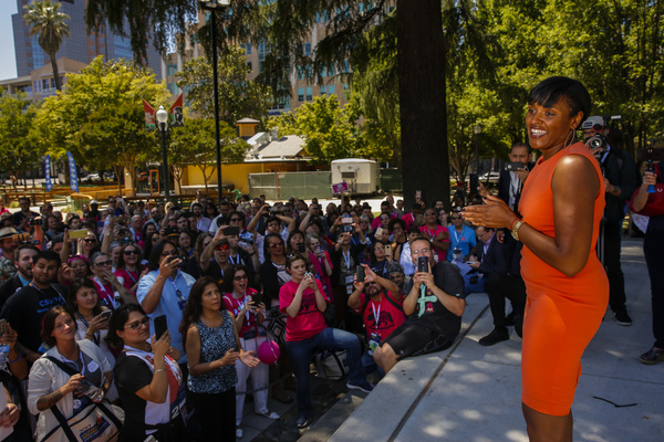 "If you dismiss progressive values and reinforce the dynamic status quo, don't assume the activists in California and around this country are going to stay with the Democratic Party," she told delegates at the convention.