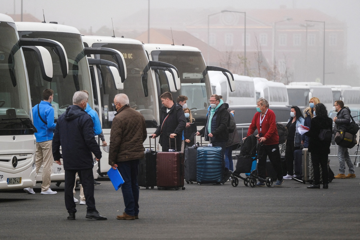 Disconsolate passengers stuck on a cruise ship moored in Lisbon's port for five days due to a COVID-19 outbreak began disembarking early on Monday, focused on clearing the final hurdle of a negative test before boarding homebound flights.