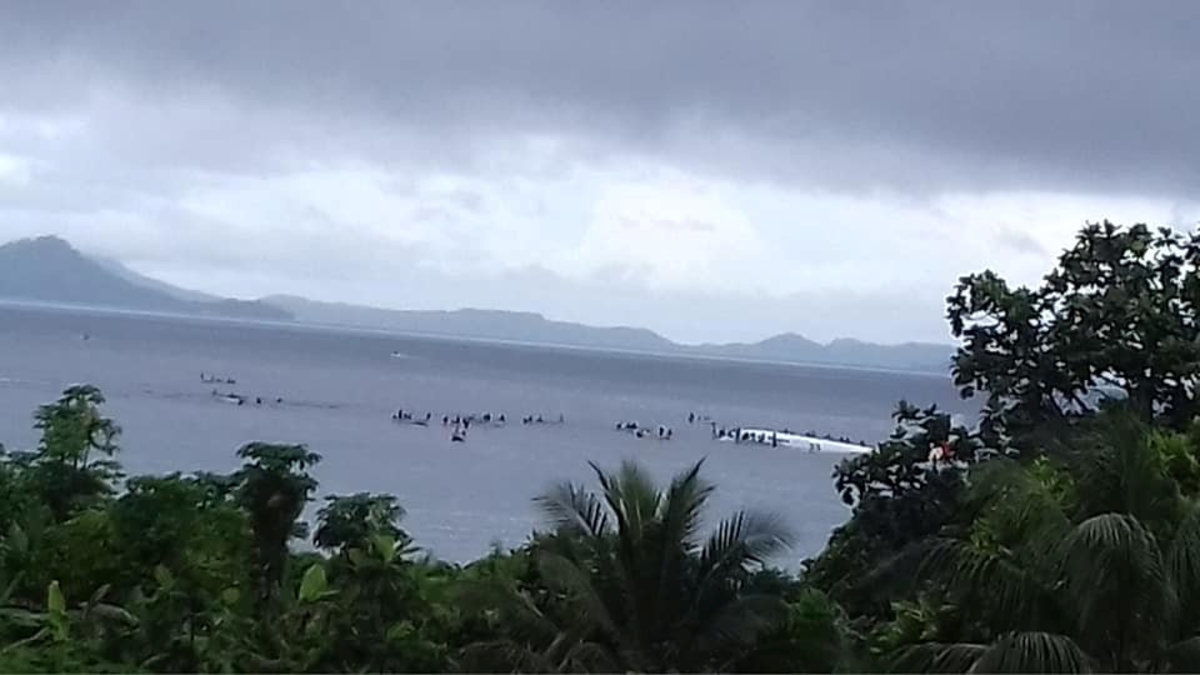 Video published online by Radio New Zealand and pictures posted on Twitter showed the half-submerged aircraft surrounded by small speedboats.