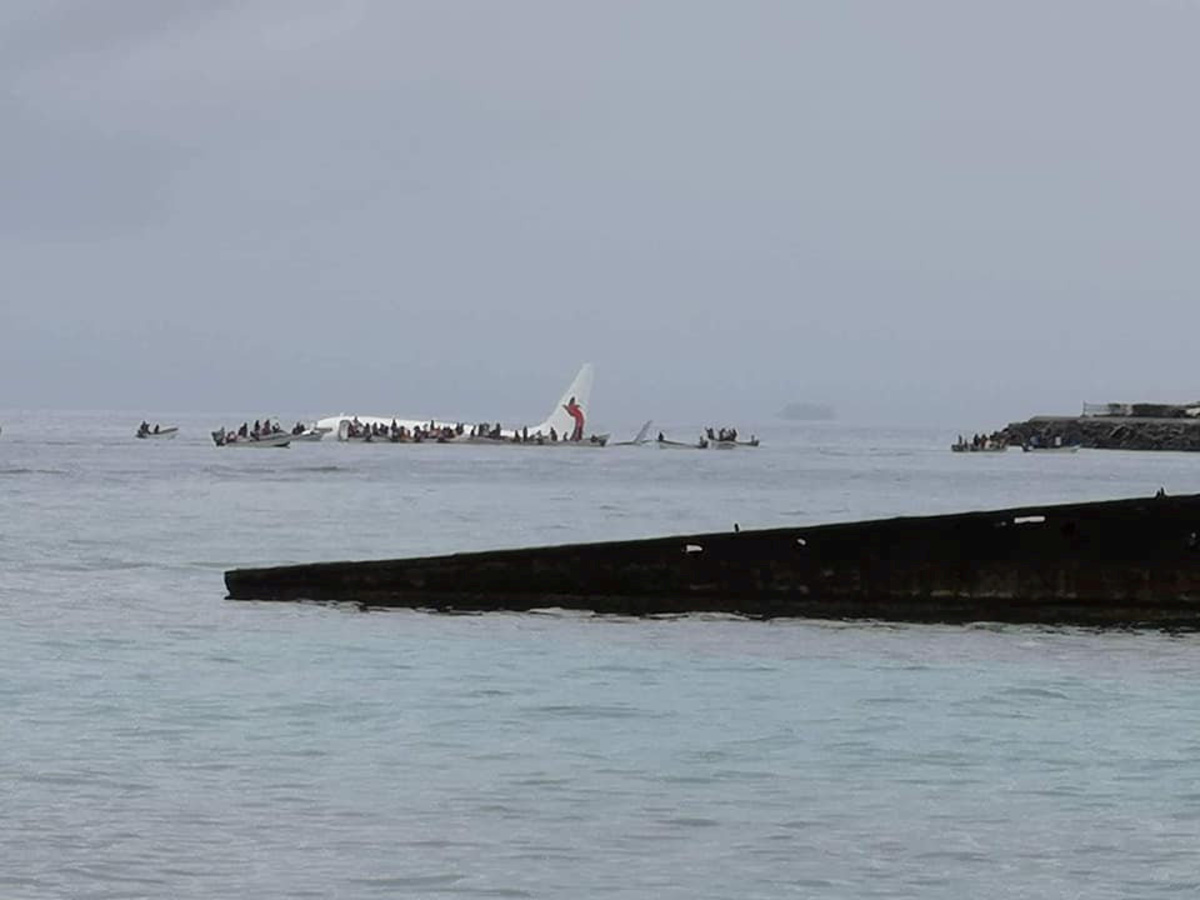 The Boeing 737-800 aircraft hit the lagoon surrounding the small island about 9.30 a.m. local time (2330 GMT Thursday), Emilio said.