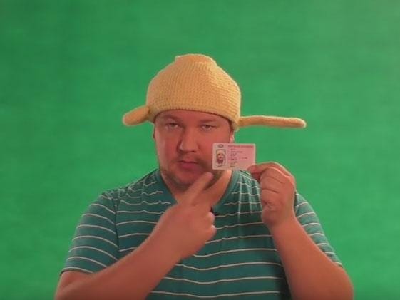 Andrei Filin, who wears a knitted yellow pasta strainer on his licence, is a follower of The Church of the Flying Spaghetti Monster – a US-based parody faith satirising religion.