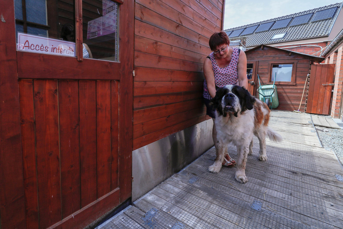 Belgian Valerie Luycx, a founder of the association "Les Petits Vieux" acting as home for dozens of elderly animals, including dogs, cats, pigs and goats, stands next to Yam, a 9-year-old Saint Bernard, in Chievres, Belgium August 7, 2018. REUTERS/Yves HermanBelgian Valerie Luycx, a founder of the association "Les Petits Vieux" acting as home for dozens of elderly animals, including dogs, cats, pigs and goats, sits with Choupy, a 14-year-old Yorkshire, Ramses, a 9-year-old Carlin and Moogly, a 13-year-old Maltese dog, in Chievres, Belgium August 7, 2018. REUTERS/Yves HermanBelgian Valerie Luycx, a founder of the association "Les Petits Vieux" acting as home for dozens of elderly animals, including dogs, cats, pigs and goats, sits with Choupy, a 14-year-old Yorkshire, and Ramses, a 9-year-old Carlin, in Chievres, Belgium August 7, 2018. REUTERS/Yves HermanBelgian Valerie Luycx, a founder of the association "Les Petits Vieux" acting as home for elderly animals, sits among some of the hundreds of pets, including dogs, cats, pigs and goats, in Chievres, Belgium August 7, 2018. REUTERS/Yves HermanDogs are seen at the association "Les Petits Vieux" acting as home for dozens of elderly animals, including dogs, cats, pigs and goats, in Chievres, Belgium August 7, 2018. REUTERS/Yves HermanA dog is seen at the association "Les Petits Vieux" acting as home for dozens of elderly animals, including dogs, cats, pigs and goats, in Chievres, Belgium August 7, 2018. REUTERS/Yves HermanBelgian Valerie Luycx, a founder of the association "Les Petits Vieux" acting as home for elderly animals, stands among some of the hundreds of pets, including dogs, cats, pigs and goats, in Chievres, Belgium August 7, 2018. REUTERS/Yves HermanBelgian Valerie Luycx, a founder of the association "Les Petits Vieux" acting as home for dozens of elderly animals, including dogs, cats, pigs and goats, caresses Calin, a European cat, in Chievres, Belgium August 7, 2018. REUTERS/Yves HermanCats and goats live together at the association "Les Petits Vieux" acting as home for dozens of elderly animals, including dogs, cats, pigs and goats, in Chievres, Belgium August 7, 2018. REUTERS/Yves HermanBelgian Valerie Luycx, a founder of the association "Les Petits Vieux" acting as home for elderly animals, sits among some of the hundreds of pets, including dogs, cats, pigs and goats, in Chievres, Belgium August 7, 2018. REUTERS/Yves HermanBelgian Valerie Luycx, a founder of the association "Les Petits Vieux" acting as home for dozens of elderly animals, including dogs, cats, pigs and goats, caresses Pastis, a 10-year-old Vietnamese pig, in Chievres, Belgium August 7, 2018. REUTERS/Yves HermanBelgian Valerie Luycx, a founder of the association "Les Petits Vieux" acting as home for elderly animals, including dogs, cats, pigs and goats, sits next to Chasse, a goat, in Chievres, Belgium August 7, 2018. REUTERS/Yves HermanBelgian Valerie Luycx, a founder of the association "Les Petits Vieux" acting as home for dozens of elderly animals, including dogs, cats, pigs and goats, caresses Pastis, a 10-year-old Vietnamese pig, in Chievres, Belgium August 7, 2018. REUTERS/Yves HermanCalin, a European cat, is seen at the association "Les Petits Vieux" acting as home for dozens of elderly animals, including dogs, cats, pigs and goats, in Chievres, Belgium August 7, 2018. REUTERS/Yves HermanBelgian Valerie Luycx, a founder of the association "Les Petits Vieux" acting as home for dozens of elderly animals, including dogs, cats, pigs and goats, looks at Pastis, a 10-year-old Vietnamese pig, in Chievres, Belgium August 7, 2018. REUTERS/Yves HermanCaracol, a ten-years old Spanish Galgo, rests on a sofa at the association "Les Petits Vieux", home for dozens of elderly animals, including dogs, cats, pigs and goats in Chievres, Belgium August 7, 2018. REUTERS/Yves HermanCalin, a European cat, is seen at the association "Les Petits Vieux", home for dozens of elderly animals, including dogs, cats, pigs and goats in Chievres, Belgium August 7, 2018. REUTERS/Yves Herman
