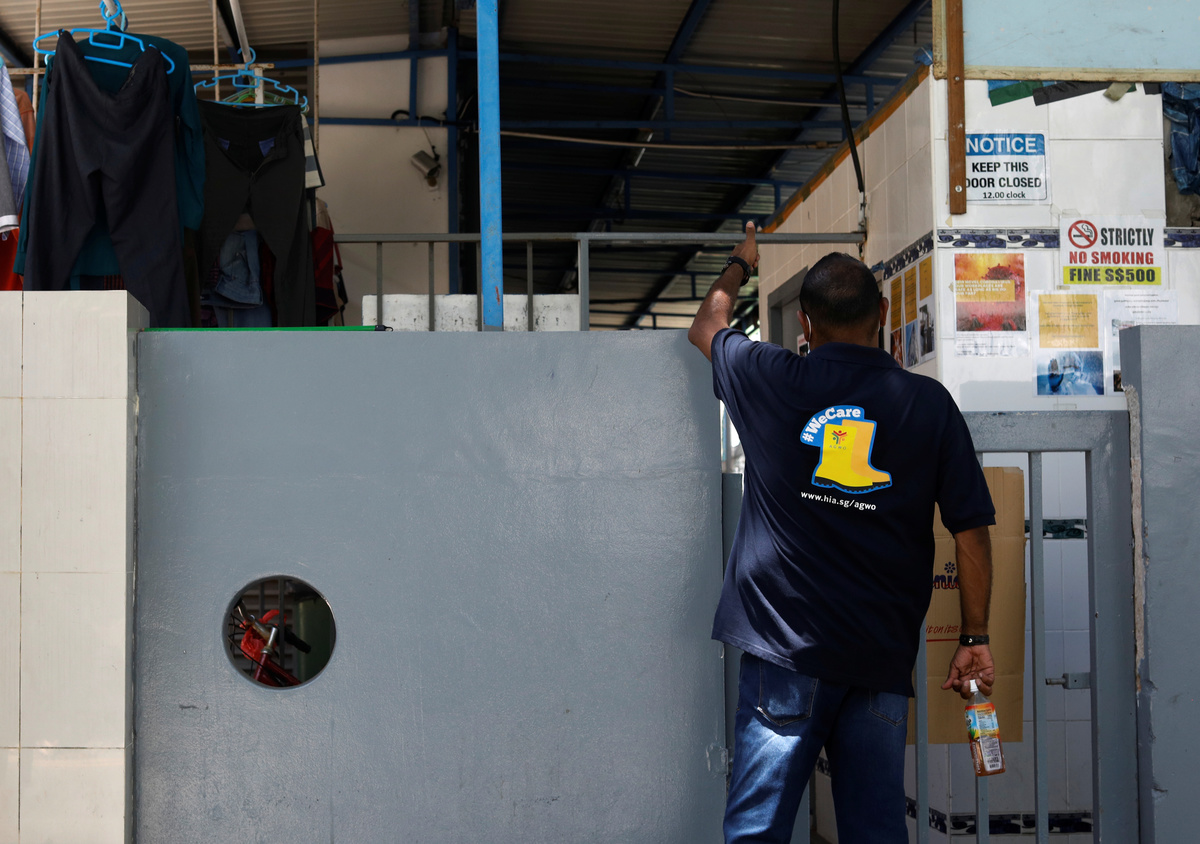 "We have contacted all the employers to try to ensure that their meals and daily essentials have been taken care of. At the same time, we reached out to charity organisations...to help supplement whatever there is shortfall," said Eugene Aw, director of RT Group, which manages several factory-converted migrant dormitories, including one visited by AGWO on Wednesday.