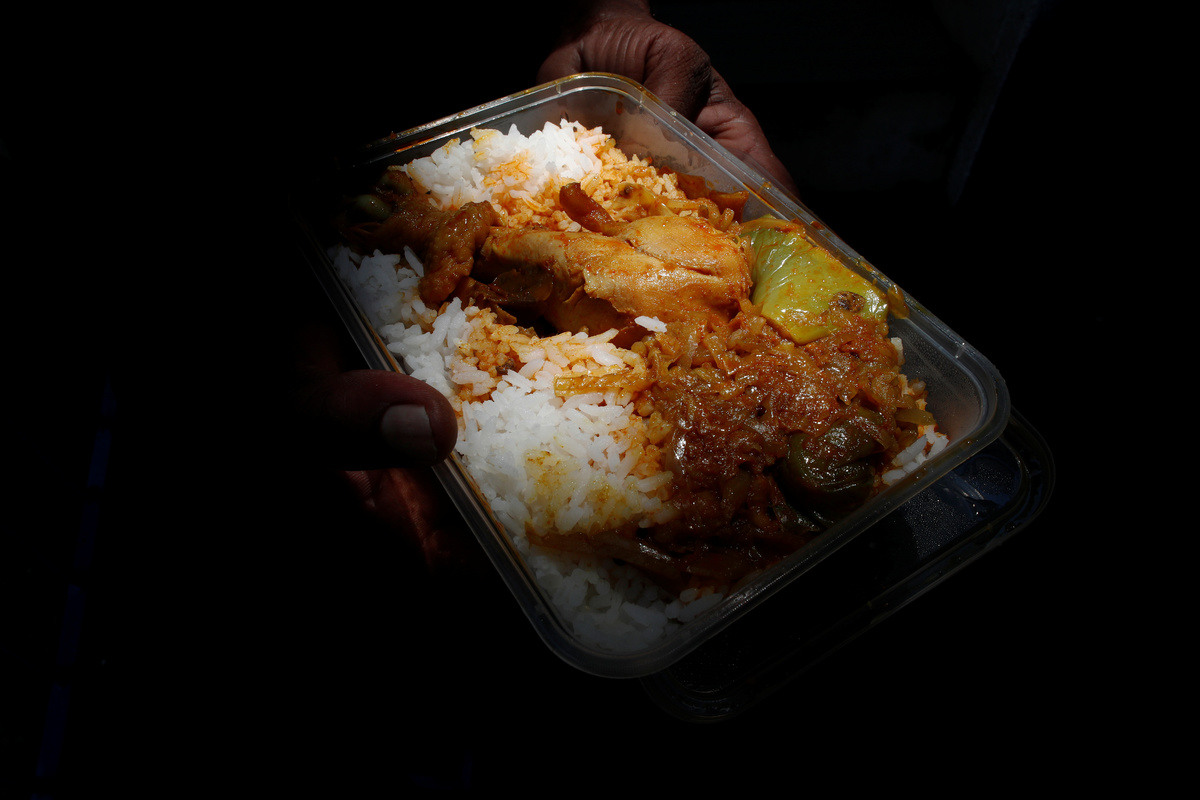 Reverend Samuel Gift Stephen delivers food to migrant workers living in factory-converted dormitories during the coronavirus disease (COVID-19) outbreak in Singapore April 22, 2020. Stephen, chairman of Alliance of Guest Workers Outreach (AGWO), non-governmental organization, oversees the daily delivery of more than 17000 meals to migrant workers living in factory-converted dormitories, whose employers have not stepped up to provide food even as they are unable to leave their dormitories since Monday. REUTERS/Edgar Su
