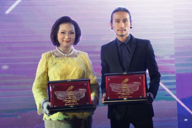 Patama, also president of the Badminton Association of Thailand, and rocker Artiwara Kongmalai, better known as Toon Bodyslam, received the 2018 Outstanding Sports Philanthropy Awards from the Sports Authority of Thailand recently.