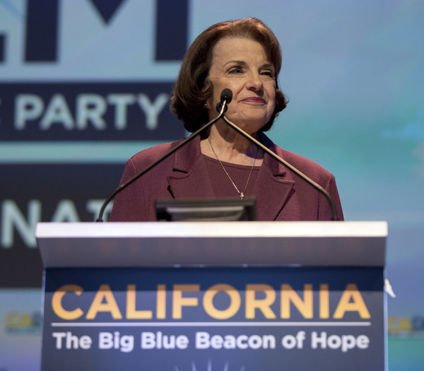 Instead, the protesters were heckling Sen. Dianne Feinstein, California's senior senator, as she walked off the convention stage where she made her case for re-election in 2018.