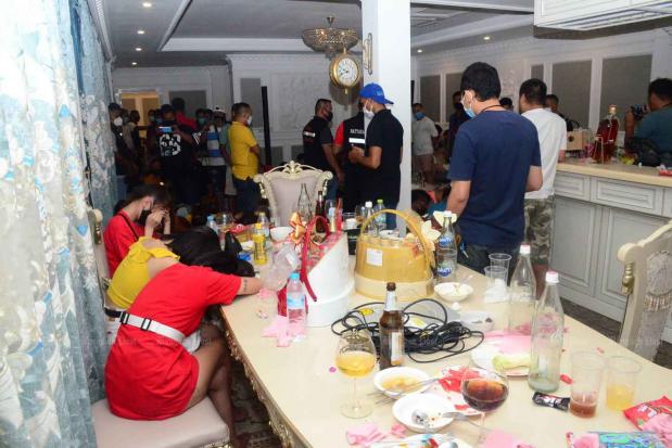 Police raided the Amazing Pool Villa pub in Bang Lamung district. It followed a tip-off people were gathering there after curfew hours.