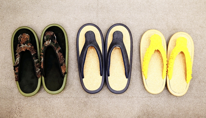 Typical footwear for yukata are geta and setta sandals, while beach sandals also work well. Natsume recommended JOJO beach sandals sold by Gion Naito, a footwear shop in Kyoto. They have good designs and can be worn comfortably because soft material is used for the thong, she said.