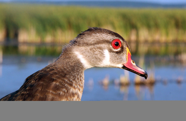 The ducks were in various stages of molt. Even adult male wood ducks looked drab. Male woodies were easily identified, however, by their red eyes.