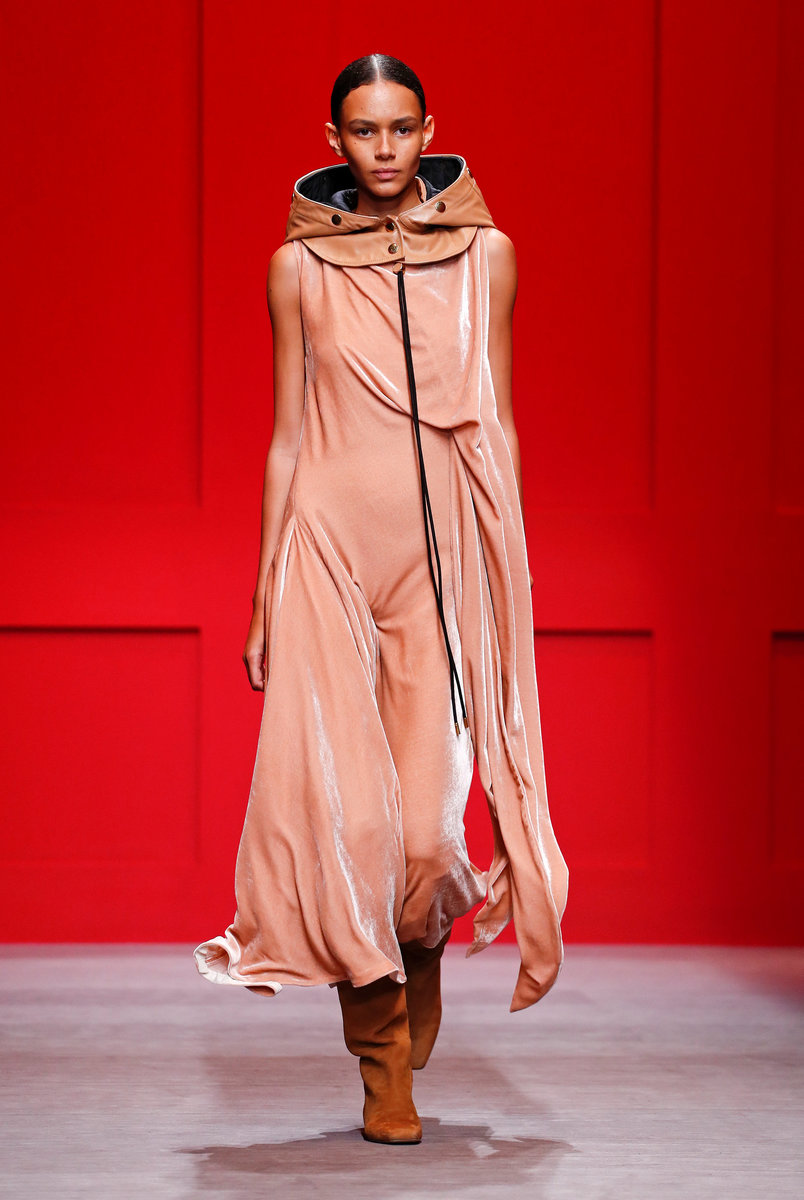 Designs were long, bare and smooth, dresses were flared and flowed. The clothes came in shades of green, burgundy, mustard yellow and deep blue, interspersed at times by nude and beige.