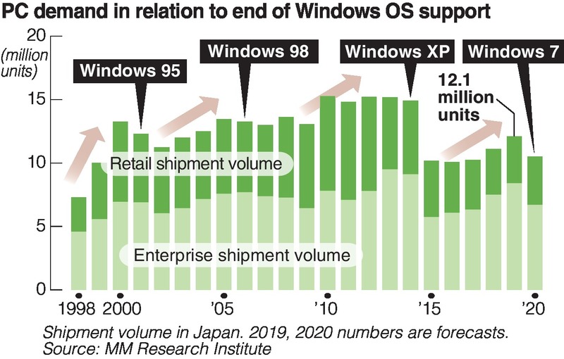 According to the business research firm MM Research Institute, Ltd., the total shipment volume of PCs in Japan in 2019 will rise 9 percent from the previous year to 12.1 million units, which would make it the third consecutive yearly increase.