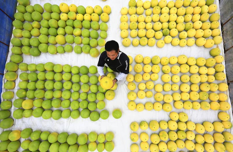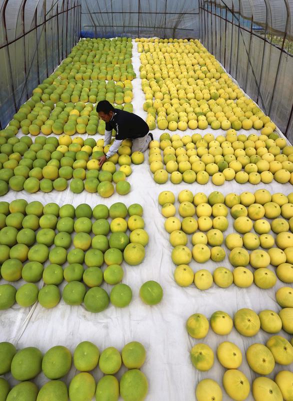 The local specialty is a type of pomelo, a member of the mandarin orange family, and each citrus weighs about 2 kilograms.