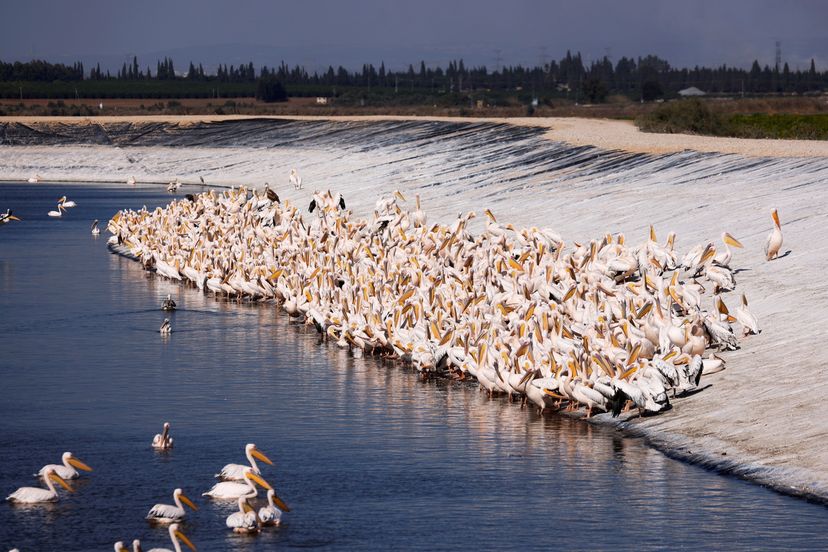 Thousands of pelicans on their exhausting journey south this autumn are on the hunt for food, and authorities in Israel have set up pelican-friendly reservoirs to protect commercial fisheries.